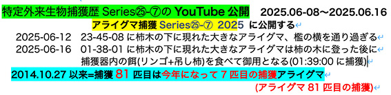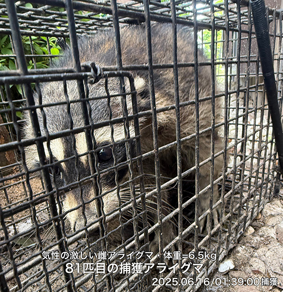 アライグマ捕獲Series25-E (2025.06.07 80匹目の捕獲記録) Video動画はこちら | ||