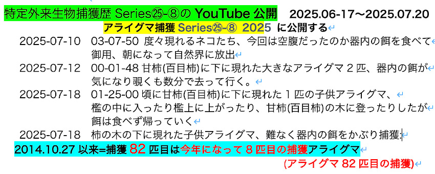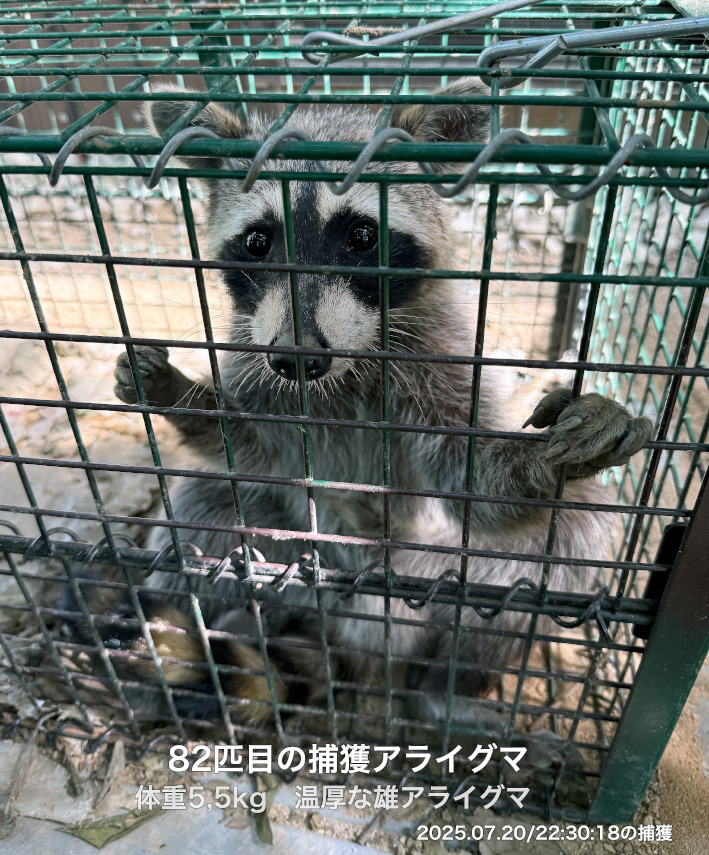 アライグマ捕獲Series25-G (2025.07.20 82匹目の捕獲記録) Video動画はこちら | ||